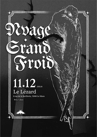 Créée au Mans en janvier 2019 , l’association Moth Frequency s’attache à promouvoir les musiques extrêmes et plus particulièrement les dérivés du Metal alternatif et expérimental (Post-Black, Drone, Doom, Sludge, etc.) à travers l’organisation de concerts dans les bars et cafés concert de la ville.